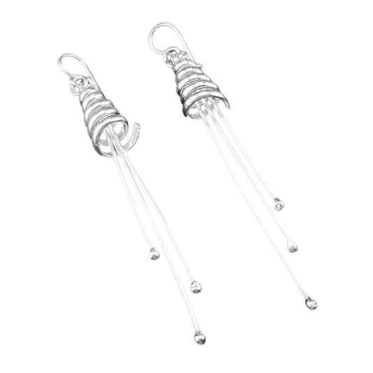 Sterling Silver .925 HOOK Earrings 10mmx90mm Wire Cone with Three Dangles