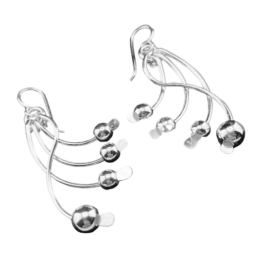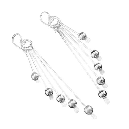 Sterling Silver .925 HOOK Earrings 10mmx60mm 3 dangles with Balls