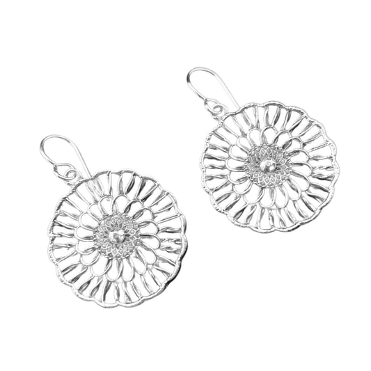 Sterling Silver .925 HOOK Earrings 28mm Floral
