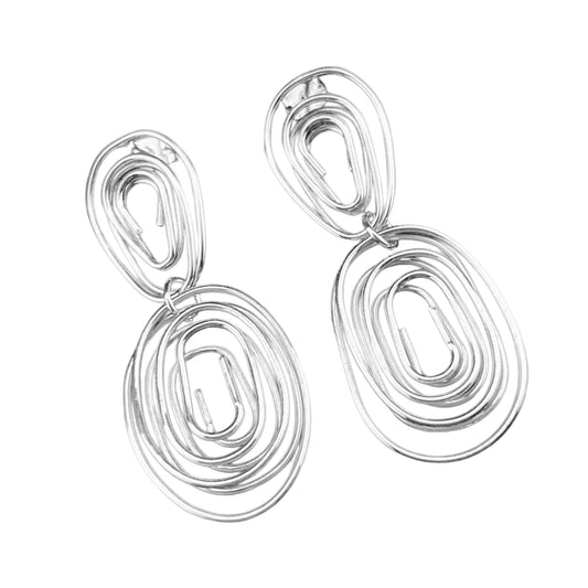 Sterling Silver .925 POST Earrings 40mmx50mm Double wire Spiral