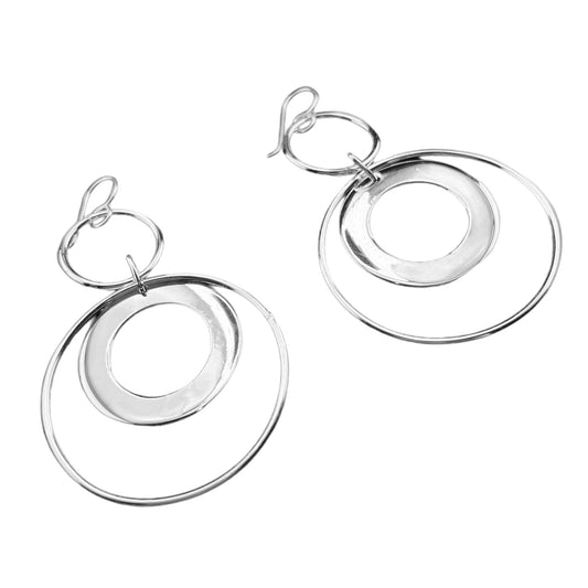 Sterling Silver .925 HOOK Earrings 41mmx65mm Circle in Circle