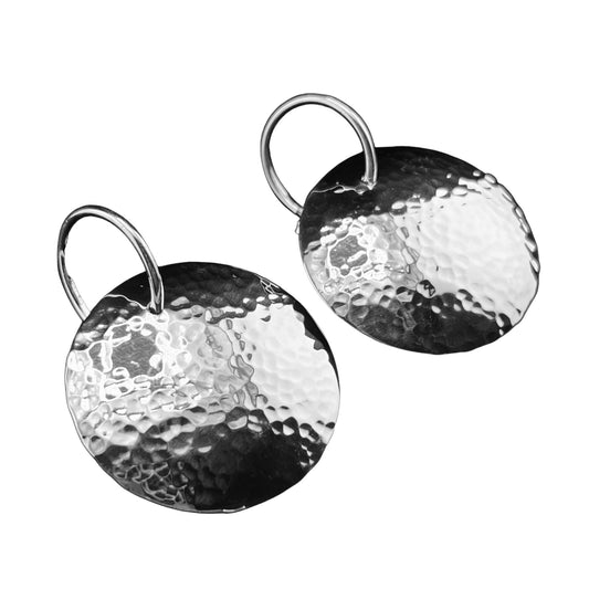 Sterling Silver .925 POST Earrings 35mmx45mm Hammered Disc