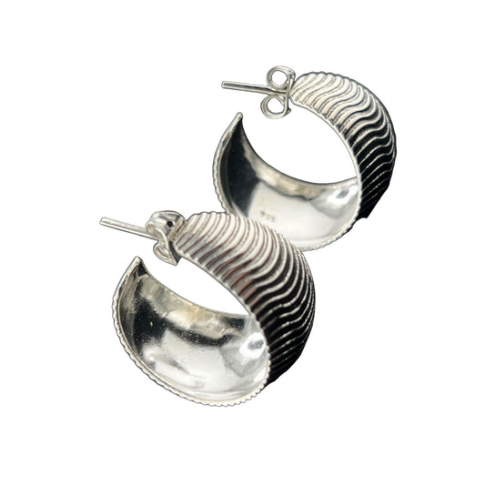 Sterling Silver .925 HOOP Post Earrings 20mmx13mm Wave Pattern