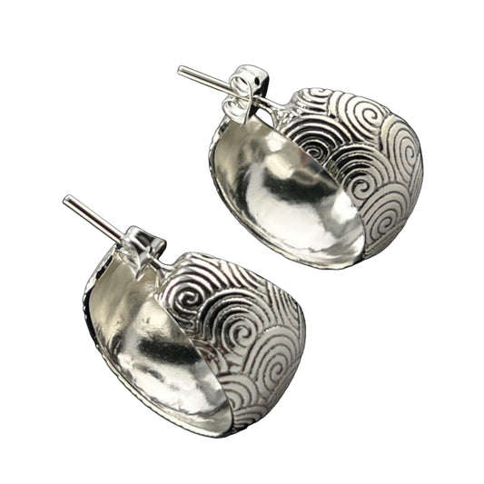 Sterling Silver .925 HOOP Post Earrings 20mmx13mm Circular Patterns