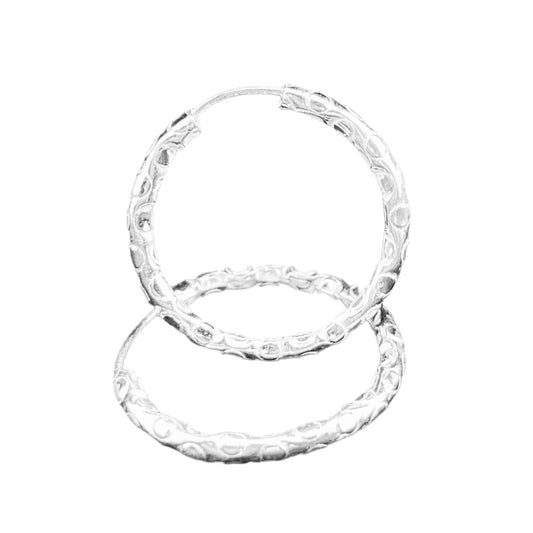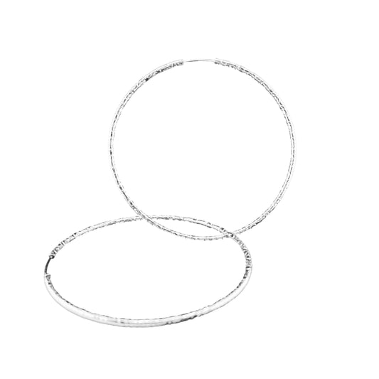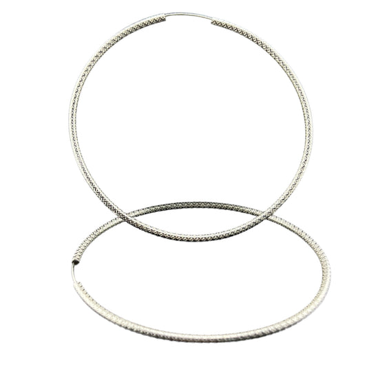 Sterling Silver .925 HOOP Endless Earrings 75mmx2mm Diamond Pattern