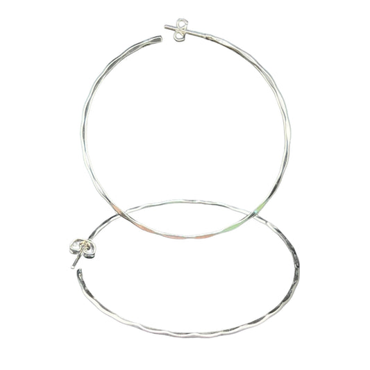 Sterling Silver .925 Hoop Post Earrings 70mmx2mm Undulating