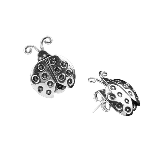 Sterling Silver .925 POST Earrings 12mmx16mm Ladybug Insect