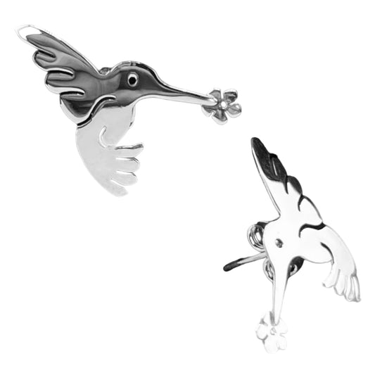 Sterling Silver .925 POST Earrings 17mmx20mm Hummingbird