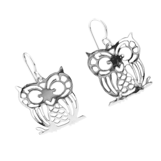 Sterling Silver .925 HOOK Earrings 23mmx23mm Boo Owl