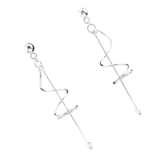 Sterling Silver .925 POST Earrings 11mmx50mm Spiral with wire Dangle