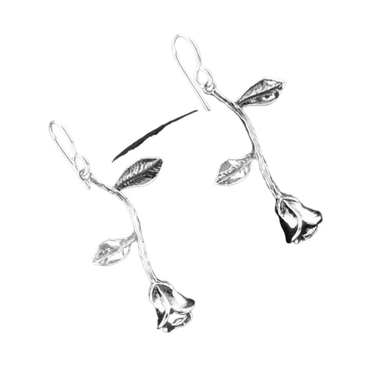Sterling Silver .925 HOOK Earrings 15mmx40mm Rose