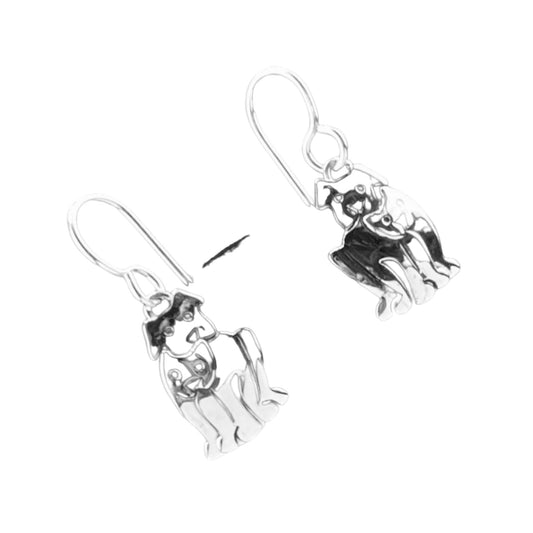 Sterling Silver .925 HOOK Earrings Dog with Cat