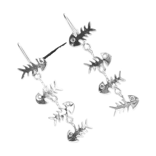 Sterling Silver .925 HOOK Earrings 10mmx40mm String of Four Boney Fish