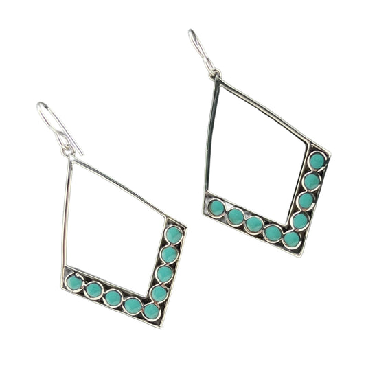 Sterling Silver .925 HOOK Earrings 30mmx46mm Diamond Shape with Turquoise