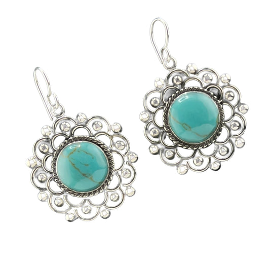 Sterling Silver .925 HOOK Earrings 30mm Turquoise
