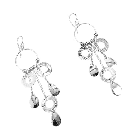 Sterling Silver .925 HOOK Earrings 23mmx80mm Circle with Circular and Teardrop Dangles