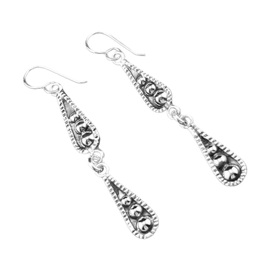 Sterling Silver .925 HOOK Earrings 7mmx52mm Two Tier Teardrop with balls