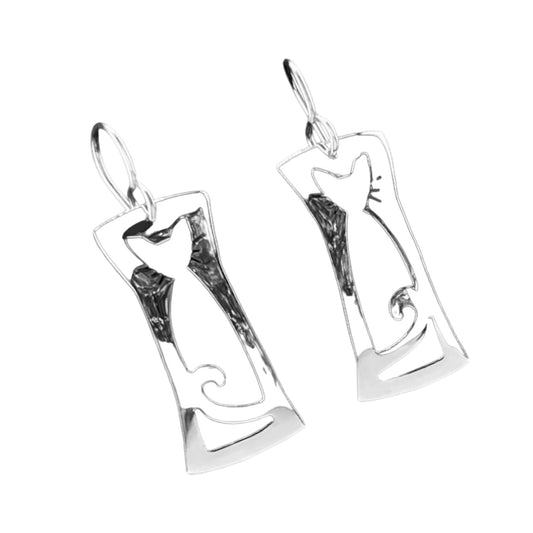 Sterling Silver .925 HOOK Earrings 12mmx28mm Rectangular frame cat cutout