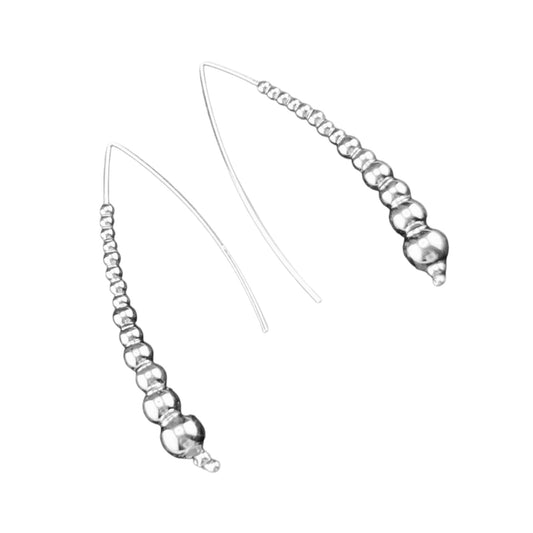 Sterling Silver .925 Integral Earrings 5mmx60mm Diminishing Beads on wire hook
