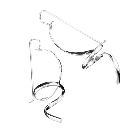 Sterling Silver .925 Integral HOOK Earrings 25mmx60mm Spiral