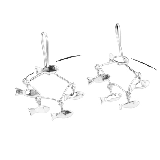 Sterling Silver .925 HOOK Earrings 35mmx40mm Fish Chandelier