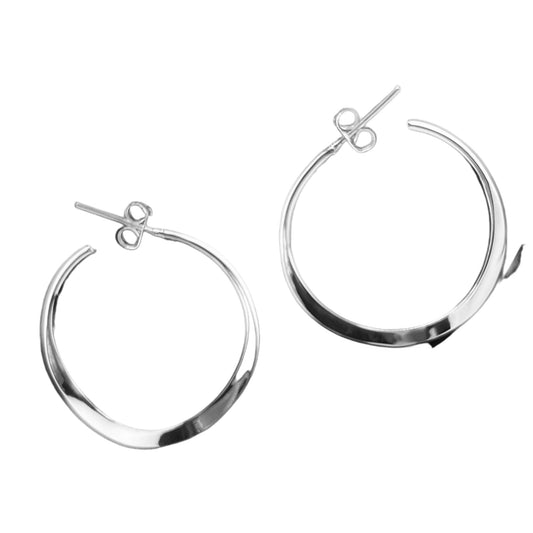Sterling Silver .925 HOOP POST Earrings 30mm Undulating Solid Smooth