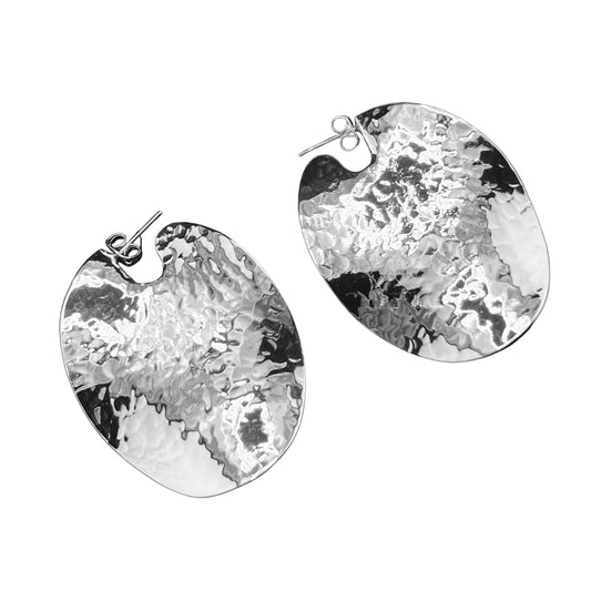 Sterling Silver .925 POST Earrings 38mmx48mm Hammered