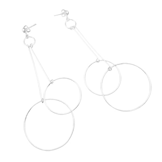 Sterling Silver .925 POST Earrings 40mmx97mm Two Circle