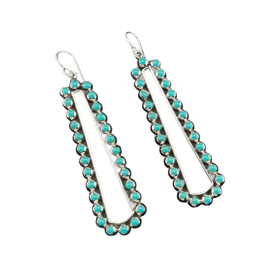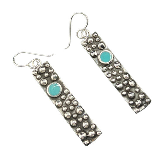 Sterling Silver .925 HOOK Earrings 20mmx72mm Rectangular with Bolitas de Turquoise