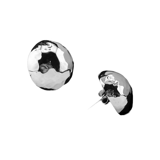 Sterling Silver .925 POST Earrings 20mmx10mm Half Ball Hammered