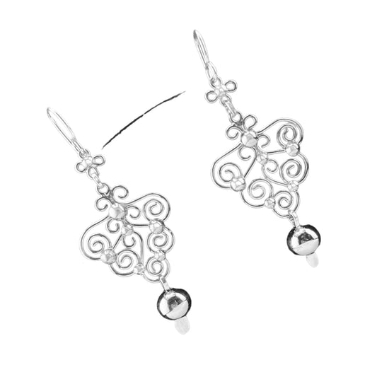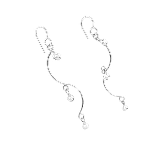 Sterling Silver .925 HOOK Earrings 10mmx45mm S Shape with three dangling balls