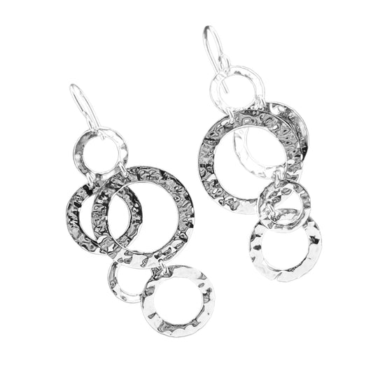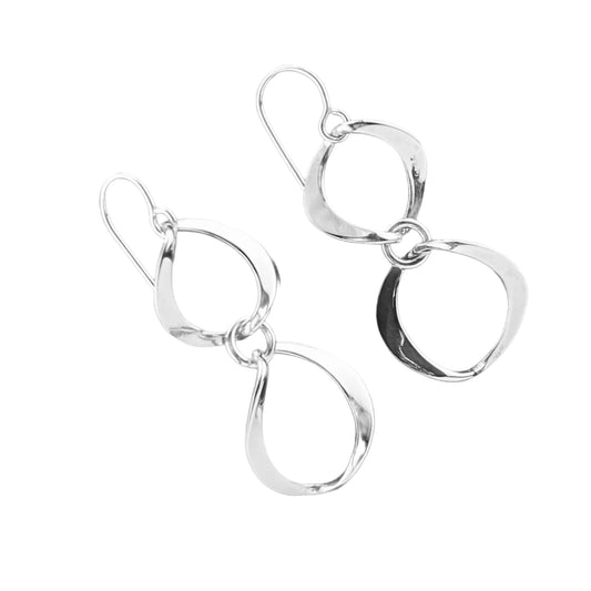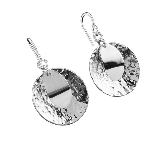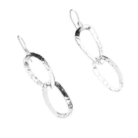 Sterling Silver .925 HOOK Earrings 20mmx42mm Double elipse hammered