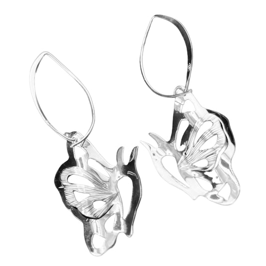 Sterling Silver .925 Self HOOK Earrings 24mmx55mm Butterfly