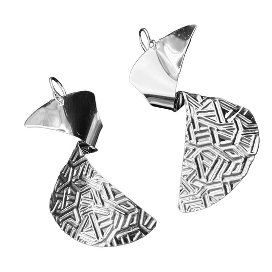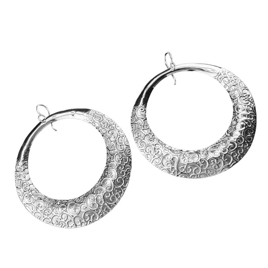 Sterling Silver .925 HOOK Earrings 68mm embossed