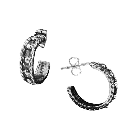 Sterling Silver .925 HOOP POST Earrings 10mmx8mm Rope with Balls