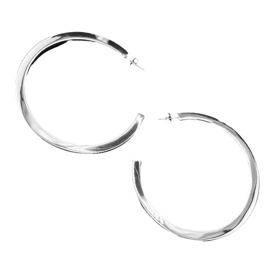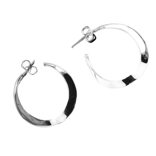 Sterling Silver .925 HOOP POST Earrings 23mm Undulating
