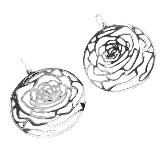 Sterling Silver .925 HOOK Earrings Rose 61mm