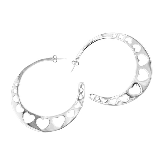 Sterling Silver .925 HOOP POST Earrings 66mm hoope with Hearts
