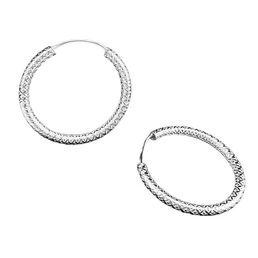 Sterling Silver .925 Infinity HOOP Earrings 25mm diamon embossed pattern