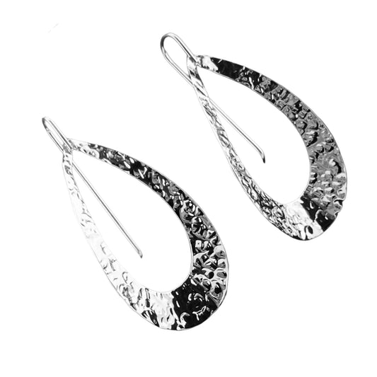 Sterling Silver .925 HOOK Earrings 23mmx56mm Cupped elongated Hammered with open center
