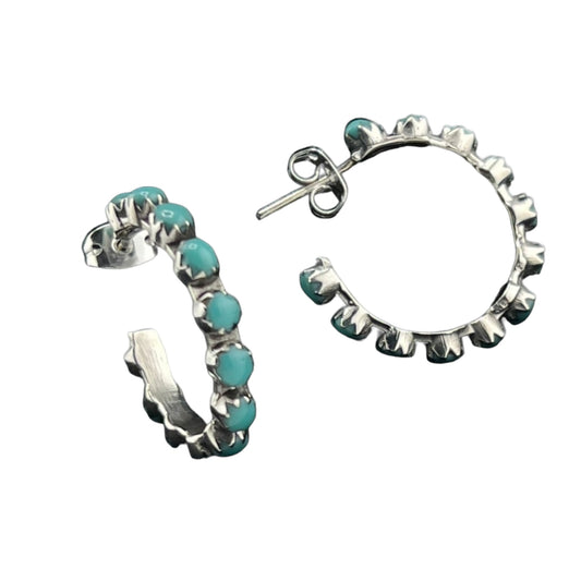 Sterling Silver .925 HOOP POST Earrings 23mm turquoise accents