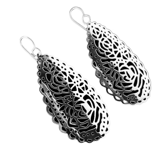Sterling Silver .925 HOOK Earrings 30mmx60mm mandala