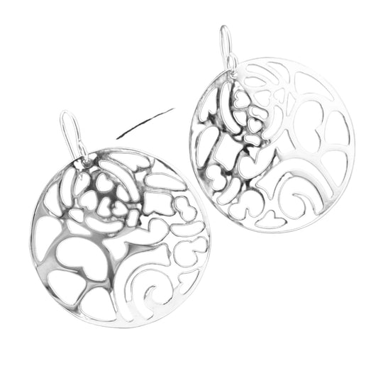 Sterling Silver .925 HOOK Earrings 40mm Perforated Pattern