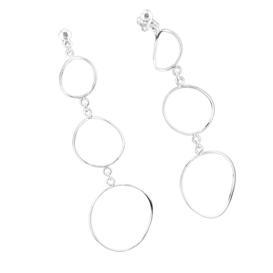 Sterling Silver .925 POST Earrings 44mmx80mm Three tier with Circles