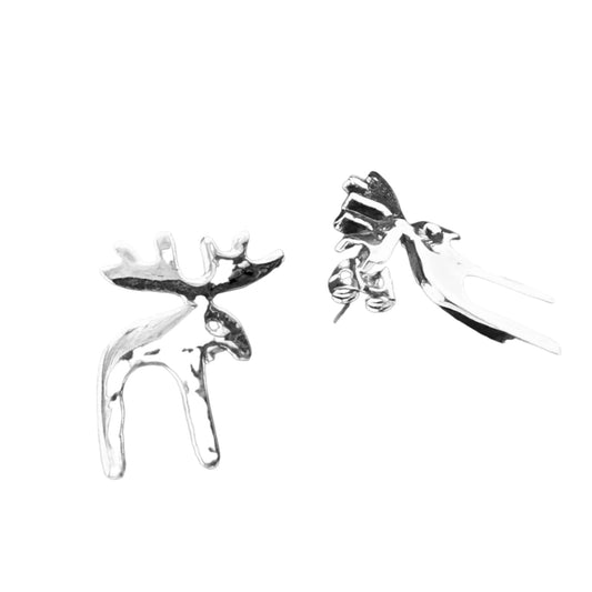 Sterling Silver .925 POST Earrings Reindeer 16mmx20mm
