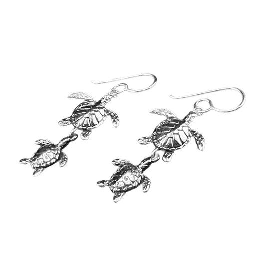 Sterling Silver .925 HOOK Earrings 15mmx17mm Turtle