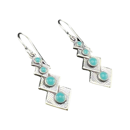 Sterling Silver .925 HOOK Earrings 11mmx30mm Quadruple Diamond with Round Turquoise Accents