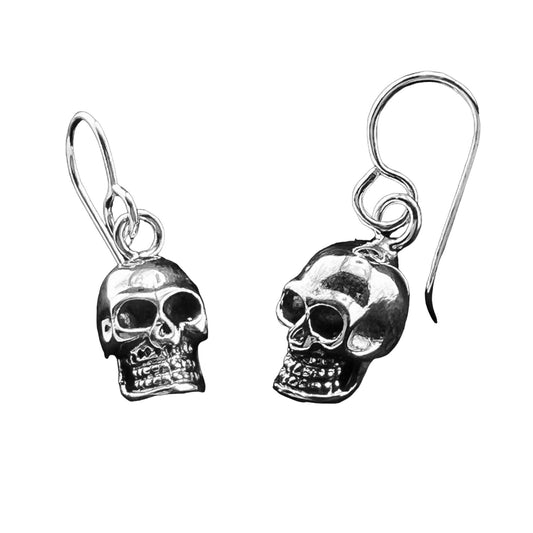 Sterling Silver .925 HOOK Earrings 10mmx13mm Skull