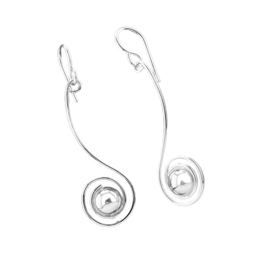 Sterling Silver .925 HOOK Earrings 16mmx45mm Spiral Fiddlehead with Silver Pearl