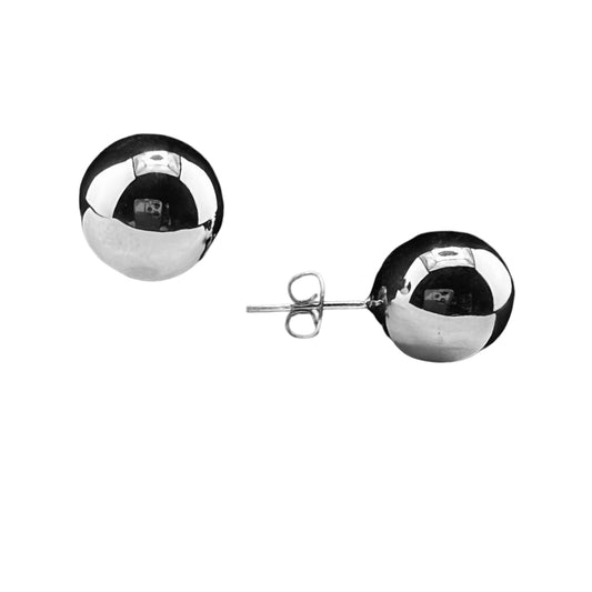 Sterling Silver .925 POST Earrings 11mm Sphere Ball